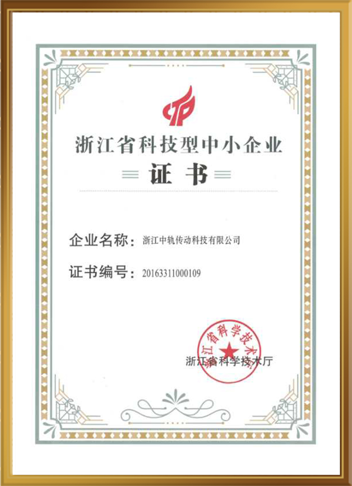 浙江省科技型中小企業證書
